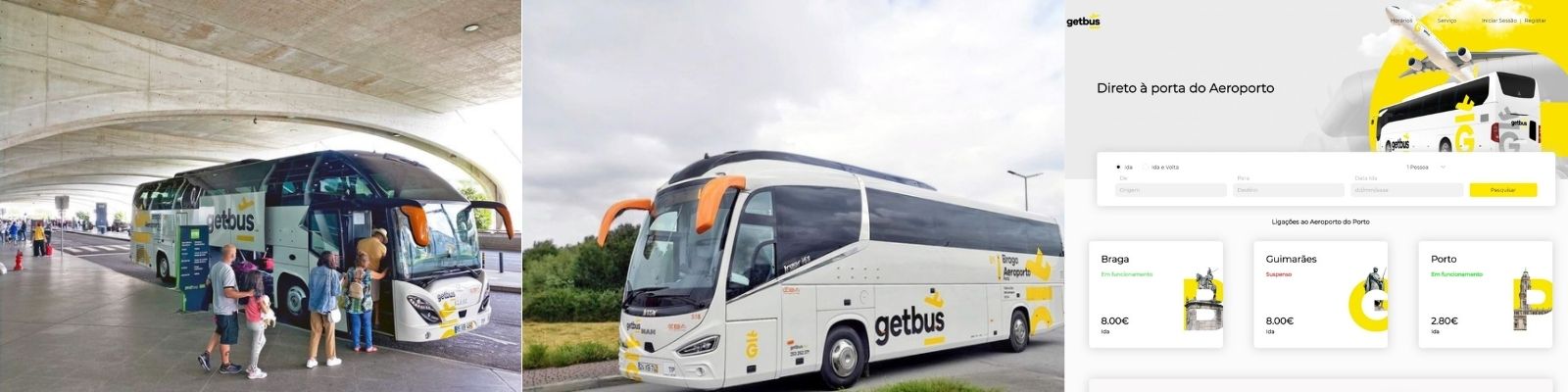A Get Bus tem ao seu dispor um transfere com ligações diárias entre o Aeroporto do Porto e as cidades de Braga e Guimarães. Com uma oferta de 18 horários entre estes dois destinos a funcionar durante o ano inteiro, a Get Bus permite ao seu utilizador um serviço de transfere mais prático e económico. Faça já a sua reserva através do nosso website www.getbus.eu.
